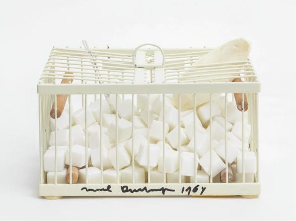Figure 19: Marcel Duchamp, Why Not Sneeze Rose Sélavy (1921, 1964 replica). Wood, metal, marble, cuttlefish bone, thermometer and glass, 11.4 × 22.0 × 16.0cm (unconfirmed). Tate Modern, London. Purchased in 1999.